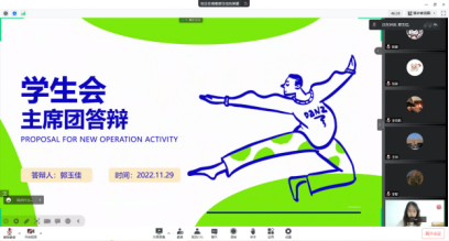 会议中,参与竞选的7位同学侃侃而谈,就过去两年中的工作经历、体会感悟,以及对未来工作的设想规划进行了详细的介绍。同时也对在工作、生活中给他们提供了许多帮助的老师及学长学姐表达了感谢,充分展现了新青年的自信与风采。