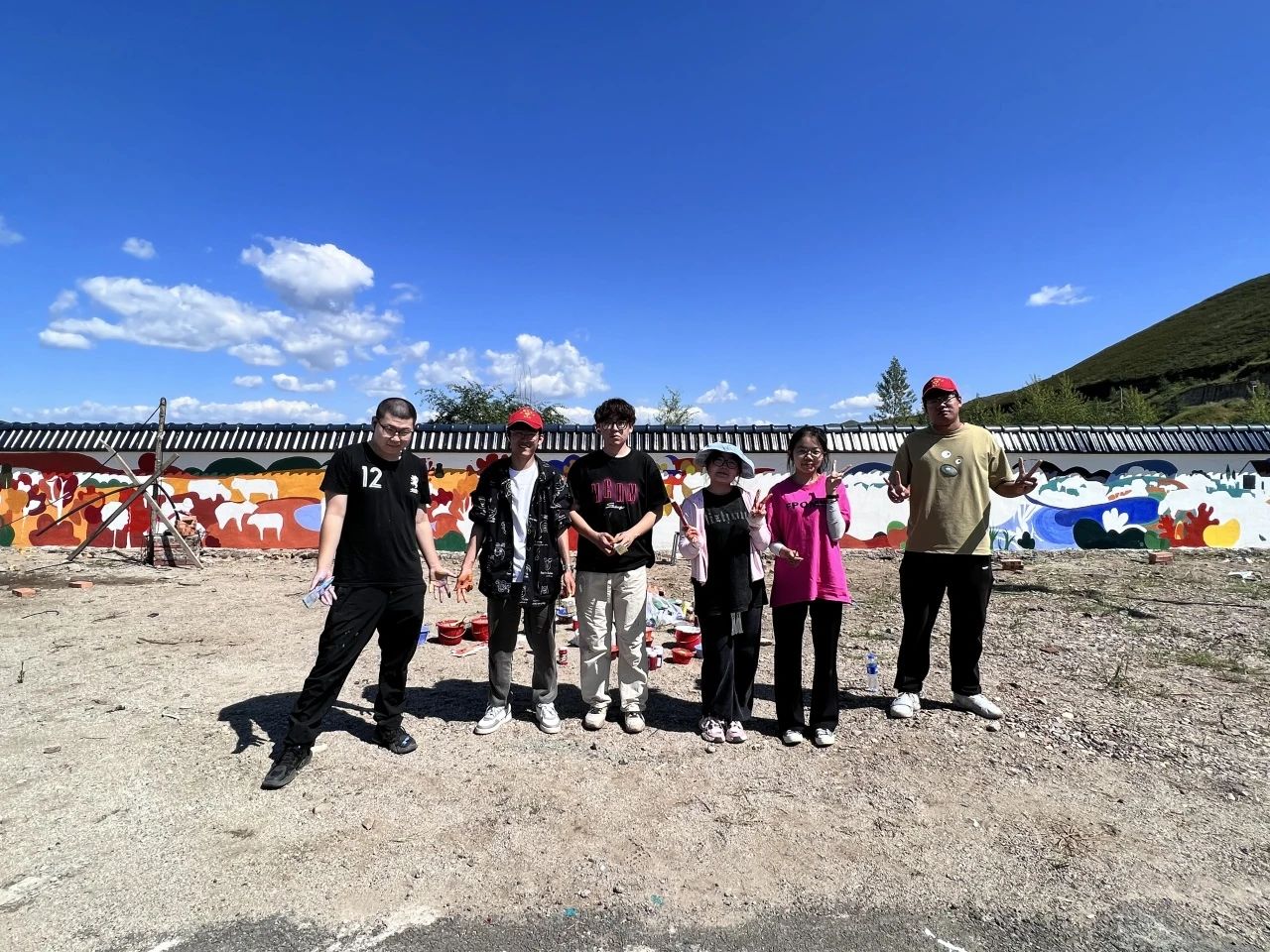 2023年8月22日至8月31日视觉传达设计专业石毕安、崔子维、李鑫、任怡颖、魏嘉玲、尹嘉诚6位同学在兴安盟科右前旗阿力得尔苏木混都冷嘎查进行了为期10天的设计创作和乡村彩绘墙绘制社会实践活动,一幅幅生动鲜活的墙体画作展现在大家面前,为嘎查披上色彩靓丽的“外衣”,嘎查更加绚丽多彩,美丽乡村新面貌进一步展现。