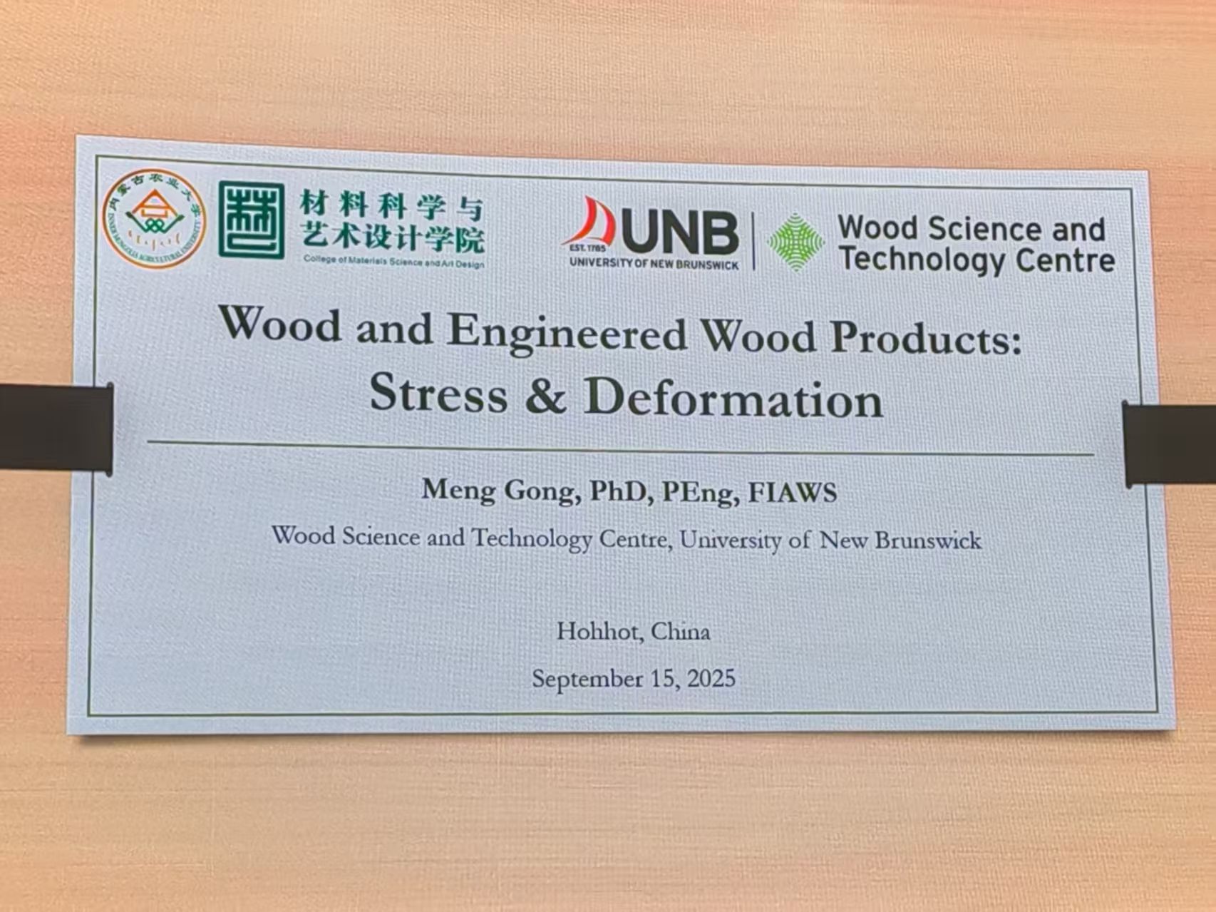2025年9月15日上午,由公司教务处、教育部木材科学与工程专业虚拟教研室主办,英国威廉希尔公司承办的林工大讲坛在书缘会议室举行。此次讲坛邀请了加拿大新不伦瑞克大学(UNB)木材科学与技术中心主任、创新木产品与木结构工程龚蒙教授进行学术报告。英国威廉希尔公司木材科学与工程、木结构建筑与材料专业的本科生、林业工程学科研究生以及专业教师100余人参加,教务处处长兼英国威廉希尔公司经理姚利宏教授主持。