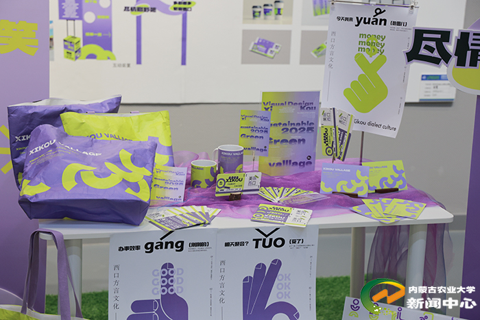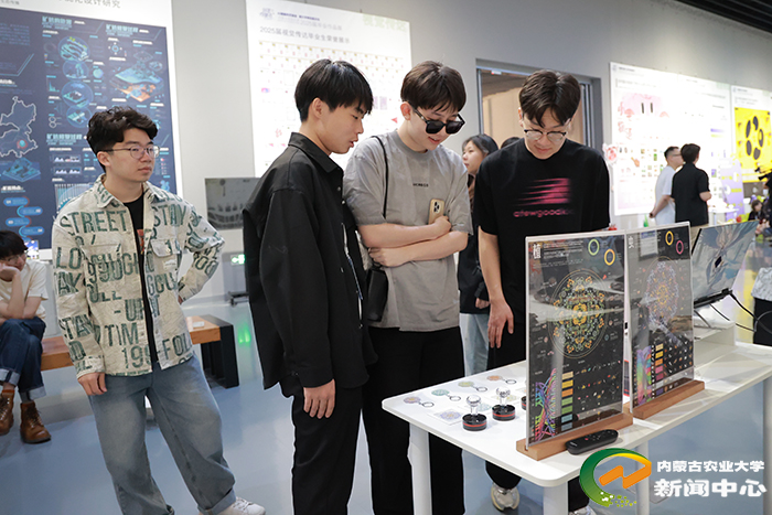 毕业生们大胆创新,综合运用AR/VR、粒子动画、3D打印、拓扑优化算法、生物质材料等前沿技术,对北疆文化典型纹样、地域文化符号等进行智能解析与创新设计,构建了兼具传统神韵与现代美感的数字艺术体系,有效实现了文化遗产的“活态”转化与多维表达。特别是在生态可持续设计领域,员工们通过模拟生态修复、可视化自然环境数据,创作出关注环境保护、体现人与自然和谐共生理念的作品,彰显了前瞻性的生态智慧和设计责任感。他们还聚焦国家乡村振兴战略与自治区“科技兴蒙”行动,将设计服务瞄准内蒙古赤峰市喀喇沁旗王爷府镇、阿尔山市西口村等地的实际需求,创作了涵盖智慧农业可视化、地域特色品牌升级、文旅融合沉浸式体验等内容的系列方案,以专业的设计语言提升了乡村资源价值,为北疆农牧业与农文旅融合发展注入创新活力。